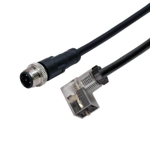 LED Solenoid Valve Type C To M12 Molding 3pins Male straight A coding Waterproof Connector Images |