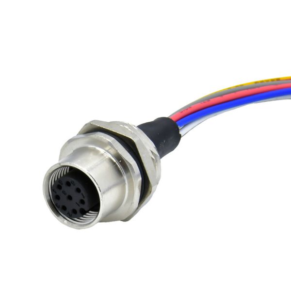 M12 A Coded 8 Pins Panel Mount Waterproof Connector Rear Lock Female Connector With Wire Images |